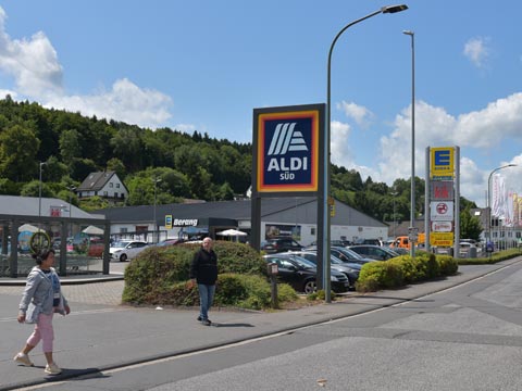 Entlang der Kölner Straße, die durch den Ort führt, finden Sie ein Möbelhaus, ein Fachgeschäft für Malerbedarf, einen Stoffladen, einen Getränkemarkt mit Postfiliale, einen rumänischen Supermarkt und ein Elektronik-Fachgeschäft.